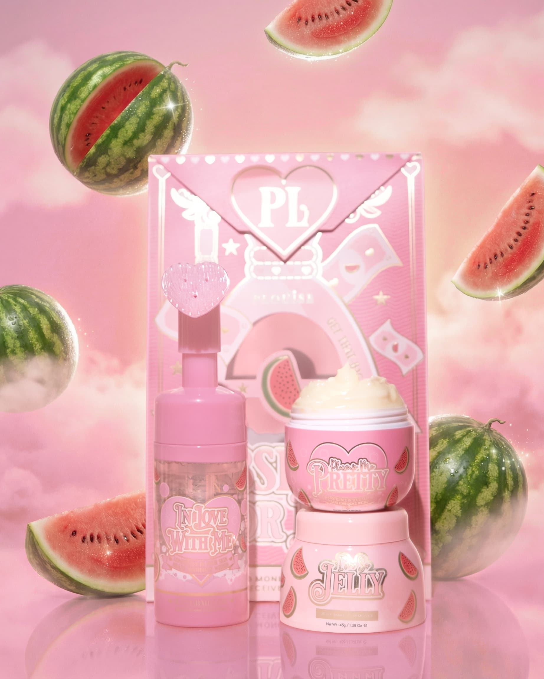 görögdinnye: I'm so Jelly: Aqua, etilhexil-palmitát, butilén-glikol, PEG-8, glicerin, Helianthus Annuus (napraforgó) magolaj, kapril/kaprics triglicerid, PEG-240/Hdi kopolimer BIS-deciltetradecet-20 éter, szorbabitán, 60, szorbabitán, 6 Sztearát, PEG-100 sztearát, gliceril-sztearát, hidroxi-acetofenon, nátrium-benzoát, parfüm, fenoxi-etanol, karbomer, aminometil-propanol, tokoferol, kálium-laurát, fomes officinalis (gomba) kivonat, sophora flavescens gyökér kivonat (fűz) kéreg kivonat, 1,2-hexándiol, Glycyrrhiza Inflata gyökér kivonat, Viola Tricolor kivonat, méhpempő, CI 16255